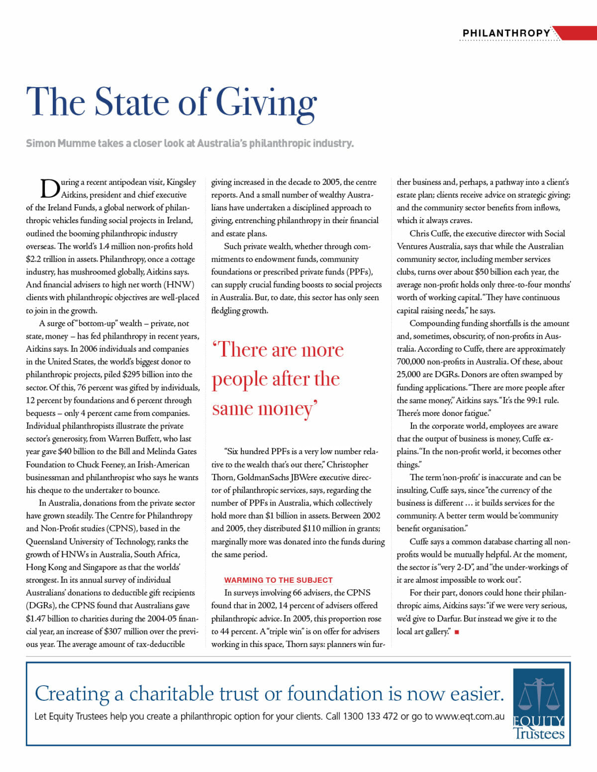 Simon Mumme takes a closer look at Australia’s philanthropic industry.