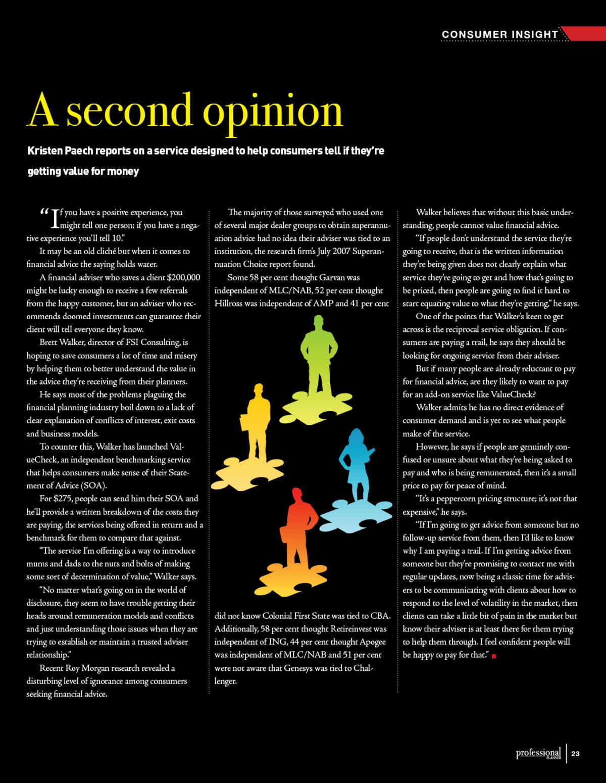 Brett Walker, director of FSI Consulting, is hoping to save consumers a lot of time and misery by helping them to better understand the value in the advice they’re receiving from their planners.