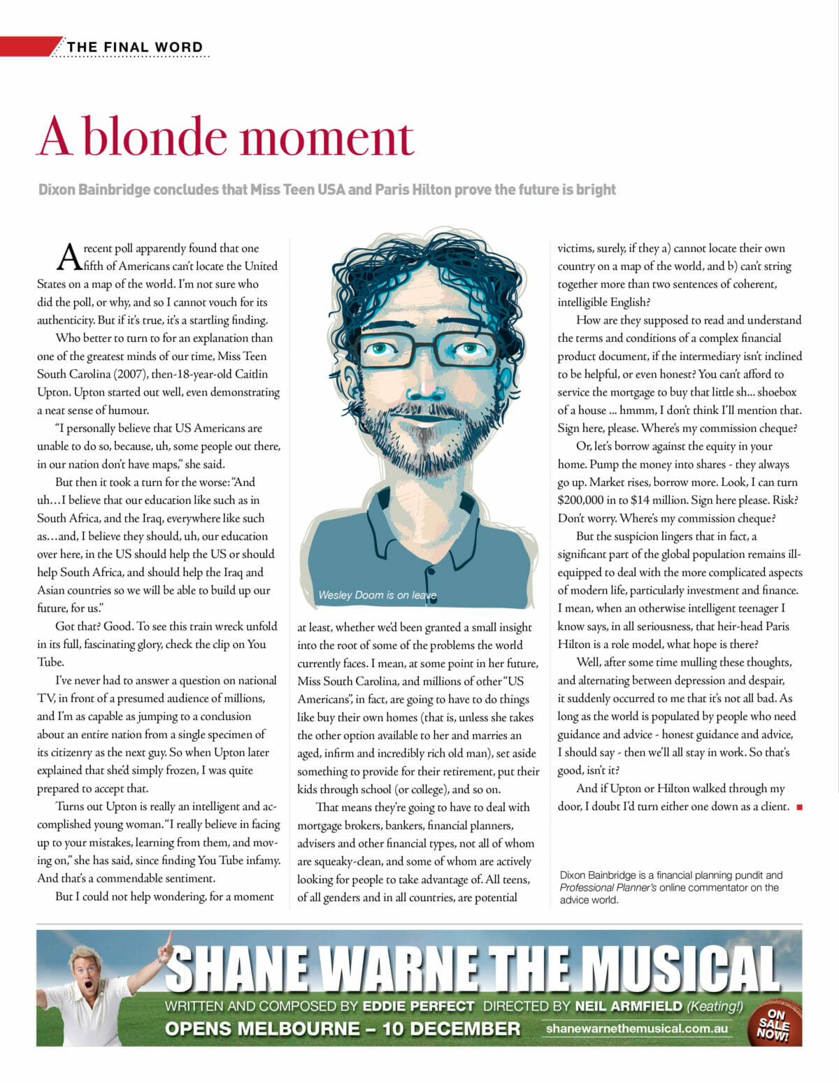 But the suspicion lingers that in fact, a significant part of the global population remains ill-equipped to deal with the more complicated aspects of modern life, particularly investment and finance. I mean, when an otherwise intelligent teenager I know says, in all seriousness, that heir-head Paris Hilton is a role model, what hope is there?