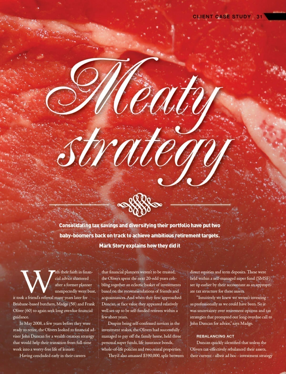 With their faith in financial advice shattered after a former planner unexpectedly went bust, it took a friend’s referral many years later for Brisbane-based butchers, Madge (58) and Frank Oliver (60) to again seek long overdue financial guidance.