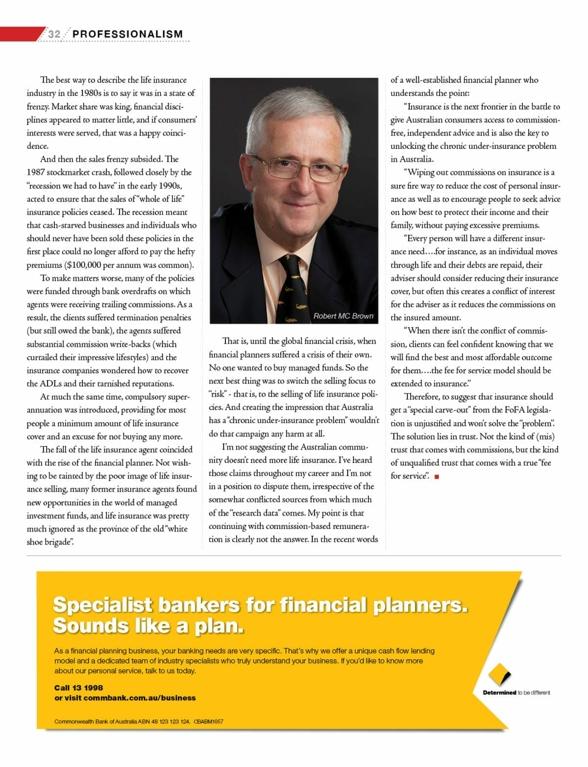 Robert MC Brown says that if planners were trusted more, underinsurance would be much less of a problem.