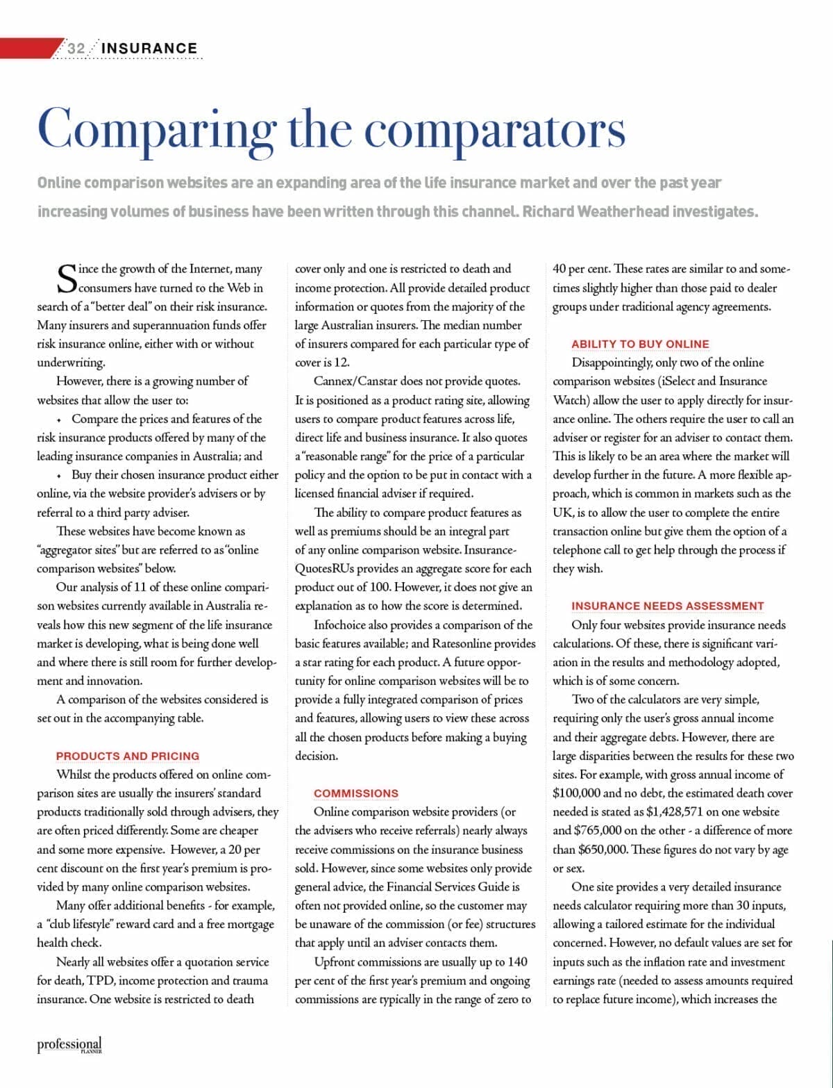 Online comparison websites are an expanding area of the life insurance market and over the past year increasing volumes of business have been written through this channel. Richard Weatherhead investigates.