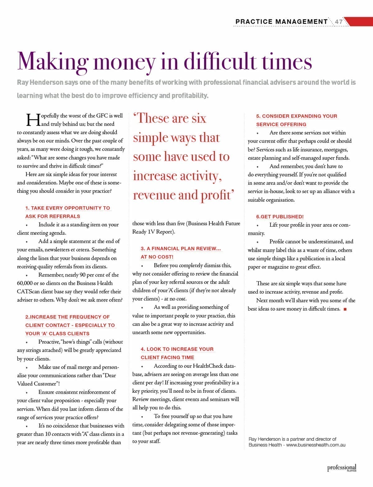 Ray Henderson is a partner and director of Business Health – www.businesshealth.com.au