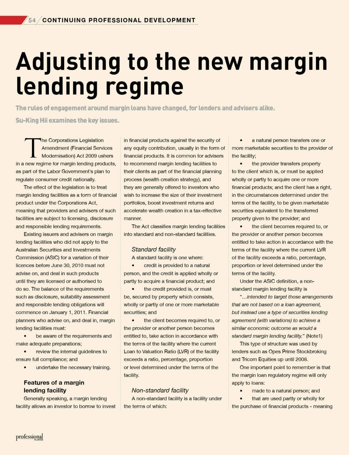 The rules of engagement around margin loans have changed, for lenders and advisers alike. Su-King Hii examines the key issues.