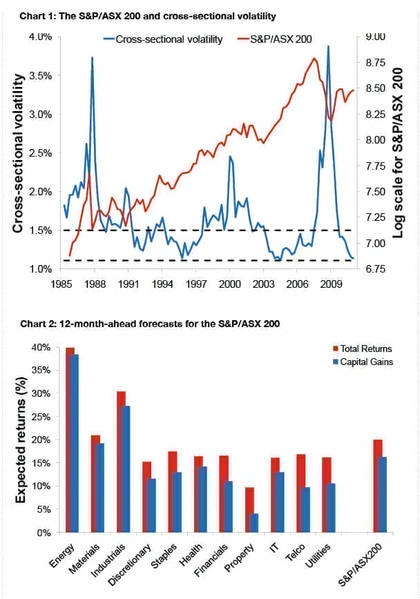 For years I have been following a statistic that I don’t usually write much about. I did some really heavy-duty research a while ago, working out what “cross-sectional” volatility (CSV) is and what it does! Put simply, one of the things I do is measure the co-movement or otherwise of stock returns in the top 200 on a given day. Each day I calculate the standard deviation of the 200 stock returns, weighted by market capitalisation.