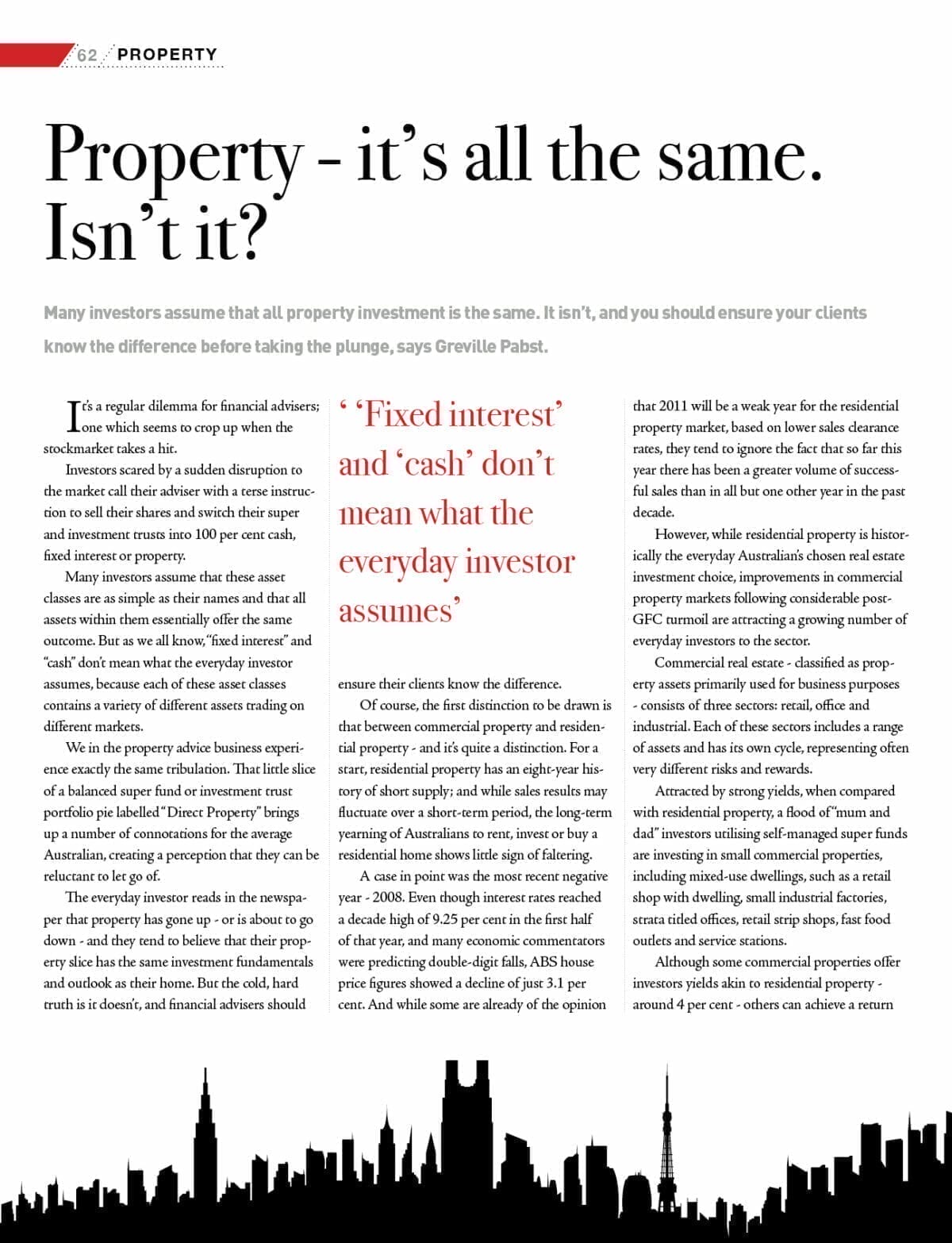 Many investors assume that all property investment is the same. It isn’t, and you should ensure your clients know the difference before taking the plunge, says Greville Pabst.