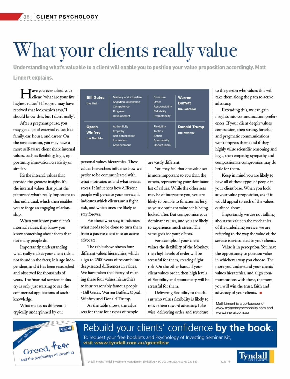 Understanding what’s valuable to a client will enable you to position your value proposition accordingly. Matt Linnert explains.