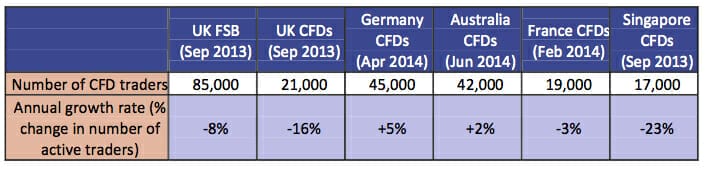 – Contrary to the global trend, the Australian CFD market grew in trader numbers despite low volatility in 2014