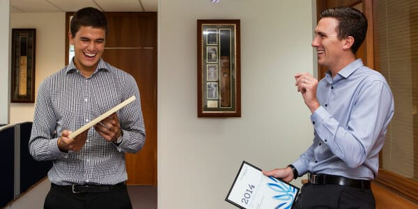 Still in its formative years, the practice currently employs three authorised representatives in Baker (on the right in the picture), Fraser Martin (also pictured) and Kristy Whittington. Martin has only recently become an authorised representative, and while Kristy does hold this status, she is not yet dealing directly with customers.