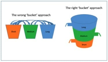 Many of those advisers we’ve spoken with view the different stages – short-medium-long term – as three, or in some cases four different buckets, filled with different investment approaches with different tolerances to risk attached to each bucket.