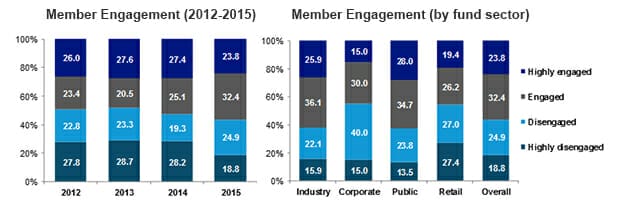 In further good news to super funds, efforts to improve member engagement seem to have paid off with the proportion of members classified as engaged or highly engaged rising to 56.2% from 52.5% in 2014.