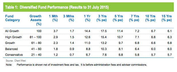 Super funds got off to a good start for the 2015/16 financial year, with the median growth fund (61 to 80% growth assets) gaining 2.3% for the month of July. This is on the back of an impressive 9.8% return for the year ended 30 June, which was the sixth consecutive positive financial year.