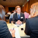 As the rain bucketed down outside, Barr oversaw an intensive “speed-dating” evening – each candidate given five minutes at a table with each prospective employer before moving on to the next.