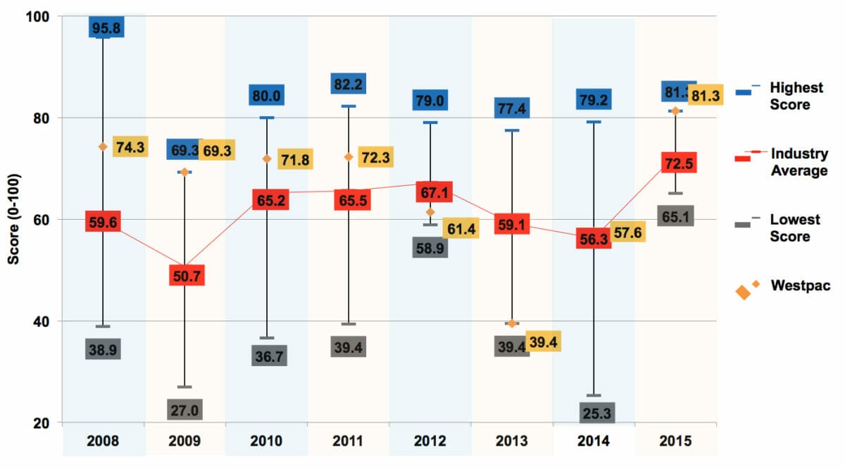In 2012 and 2013, Westpac was the least compliant advice business in Australia, persistently falling over in the simple legislative areas of the customer onboarding process. By 2014, it was bang on the industry average in terms of compliance. And by 2015 it was the best in the industry.