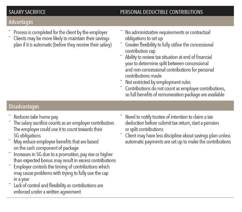 Perhaps in the future clients will prefer to make personal deductible contributions instead of arranging salary sacrifice with employers.