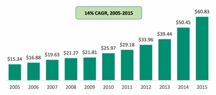 Despite the common complaint that there’s too little growth, there are many companies and industries that are growing quickly. Outbound Asian (particularly Chinese) tourism is growing exponentially. Broadband usage is growing rapidly as we use more data for entertainment. Online flight and hotel bookings are also stealing market share from traditional travel agents at a rapid clip.