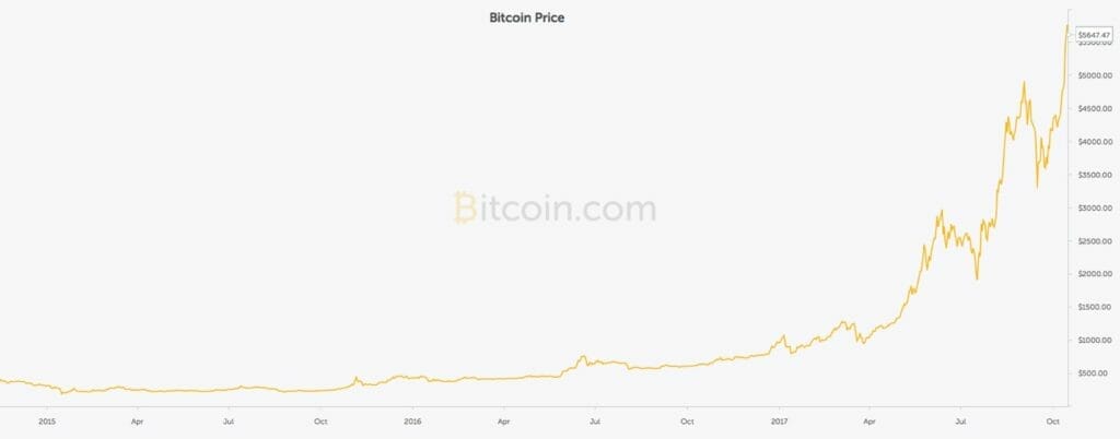 And even further up the risk spectrum is the cryptocurrency Bitcoin. While Jamie Dimon says central banks will “crush it”, and news reports suggest exchanges can be hacked and that they’re the preserve of cowboys and drug smugglers, others suggest digital currencies have all the characteristics required to be considered money, including uniformity, divisibility, portability, durability, limited supply and acceptability. Regardless of who is right, the price ascent, shown in Figure 3, is another sign that investors/speculators are willing to risk everything to make a dollar – even if it’s a cryptodollar!