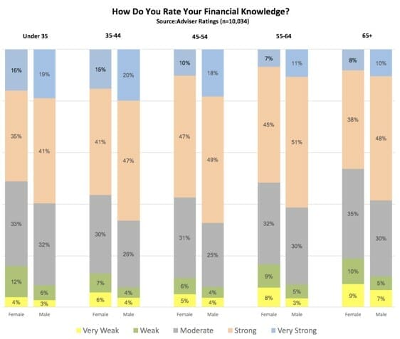 Research on the Australian market by Adviser Ratings indicates there is a statistically significant difference in the way men and women view their financial intelligence.