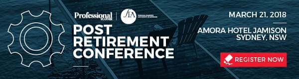 Professional Planner’s Post-Retirement Conference (retail) will be March 21 at the Amora Hotel in Sydney. To register, click here. FPA & SMSFA Members receive complimentary registration.