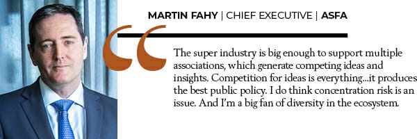 ASFA chief executive Martin Fahy says the super industry is big enough to support multiple associations, which generate competing ideas and insights.