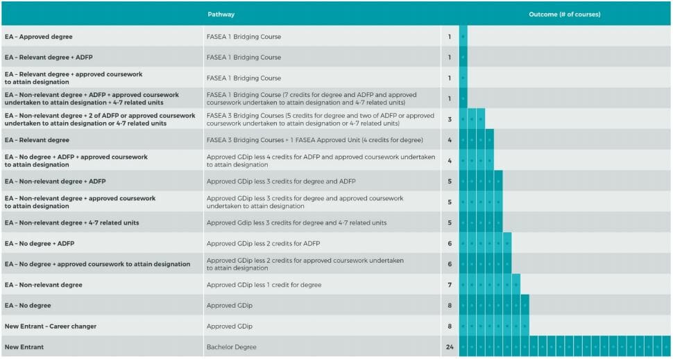 If advisers have enough RPL behind them, they can get away with completing between one and three FASEA-approved bridging courses, but if that RPL amounts only to a relevant degree, the adviser will also need to complete a “FASEA-approved unit”.