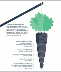 Increasingly, licensees are finding the competitiveness of their offering hinges on the quality of their services, a notion supported by the CoreData research, which found that only 8 per cent of advisers said a licensee’s brand would make them consider switching