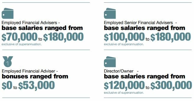 Elixir’s 2018 Adviser Remuneration report provides a broad range of adviser salaries (pictured). While not providing an industry average, the base salaries outlined in Elixir’s report triangulate on a salary slightly north of $125,000. With bonuses stretching above $50,000, total average remuneration would be much higher again.