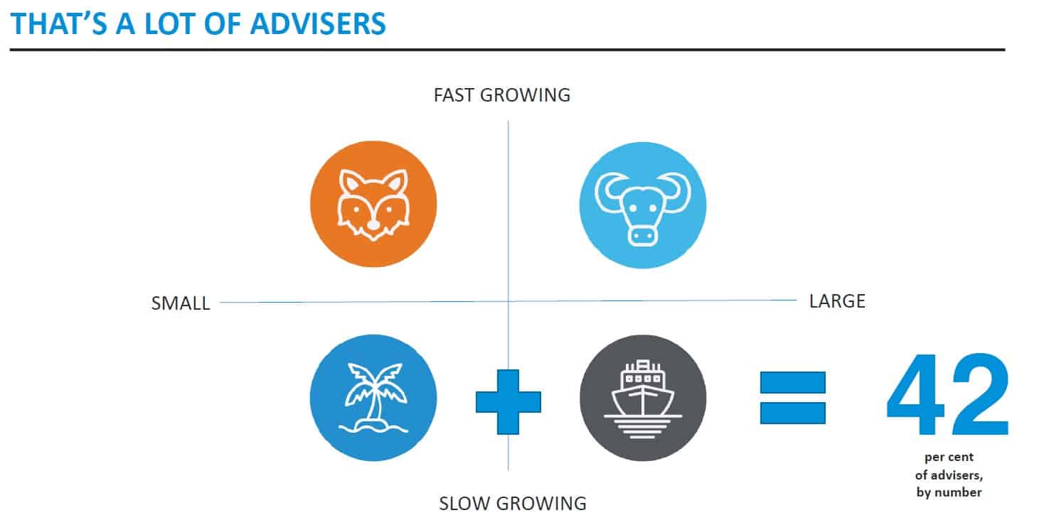 One thing made clear by CoreData’s work during 2019 is that not all advice practices are made equal, and not all are equally well equipped to flourish in the new world of financial advice. Early in the year CoreData produced a segmentation model dividing the advice practice universe into four segments: Foxes, Oxes, Islands and Cruisers (OK, we know the plural of “ox” is “oxen”, but sometimes the rhyme is the most important thing). Each segment has its own set of challenges, and survival is not guaranteed for any business, but the challenges for some will be greater than for others. One of the principal characteristics of Cruisers, for example, is a heavy reliance on grandfathered conflicted remuneration, and large books of clients who are not provided ongoing services.