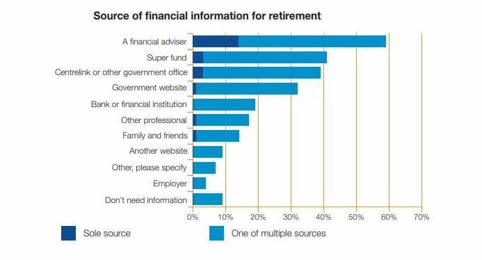 “Only a handful of respondents relied on any one of the other sources as their sole source of financial information about retirement, indicating that older Australians are weighing their options and doing research before making major decisions,” the report stated.