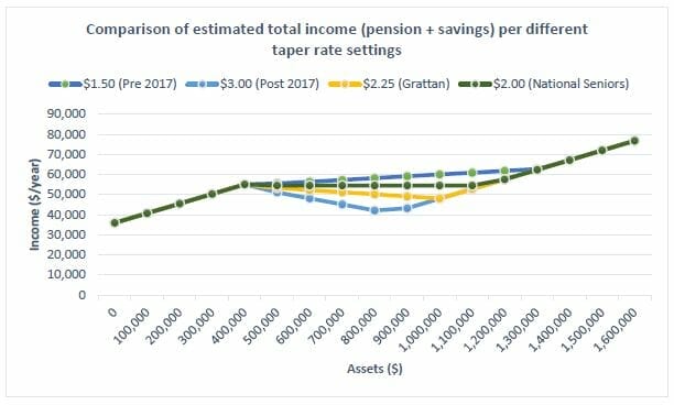 Moreover, modelling showed the taper rate actually reduced total income for retirees with balances between $400,000 and around $800,000, depending on the data and the variables.