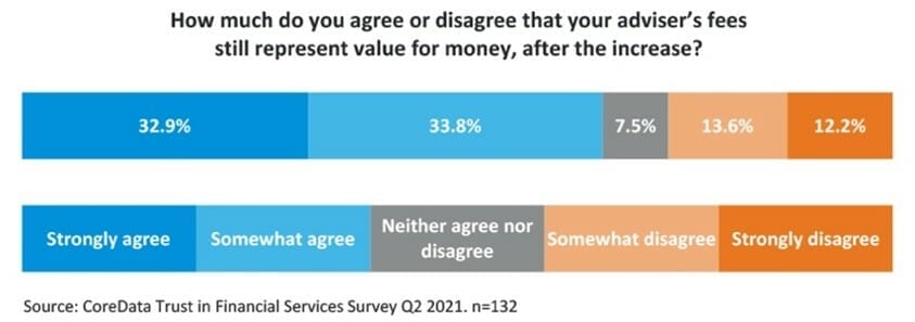 But so far, there’s little evidence emerging that consumers are starting to thing advice is too pricey. Again, this is likely to be because advised consumers understand the value of advice, and when their adviser increases the cost most of them continue to think they’re still getting value for money. A caveat here is that we received responses from only 132 advised consumers whose adviser has increased the fee they charge in the past year, so it’s a small sample. But it’s an interesting indicator nonetheless.