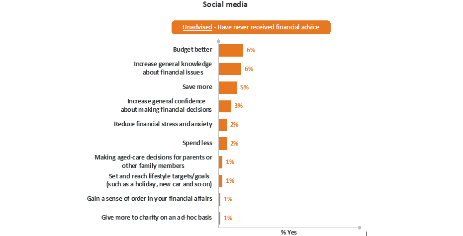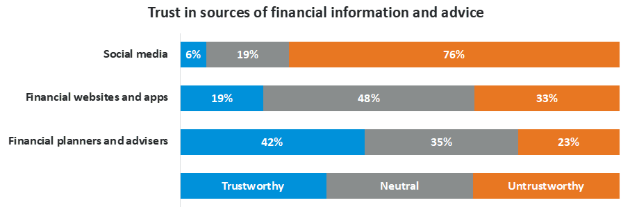 Websites and apps are considered more trustworthy than social media, with around two in 10 (19 per cent) unadvised consumers saying information and advice about financial issues provided by financial websites or apps is trustworthy.