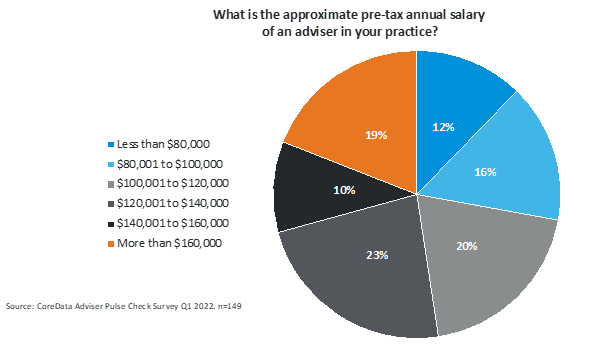 Meanwhile, the Pulse Check survey also reveals that around one in eight (12 per cent) advisers are earning less than $80,000 a year (pre-tax) but almost one in five (19 per cent) earn more than $160,000 a year.