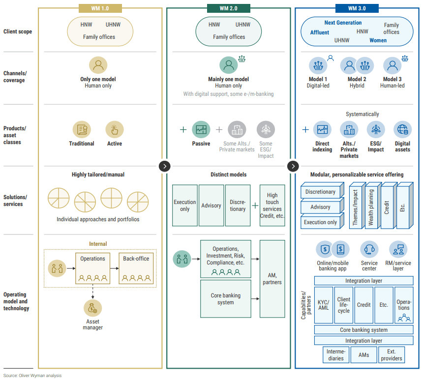 There will be three areas that wealth managers need to focus on in the transition to Wealth 3.0 Coverage and service model, delivery models, and value management.