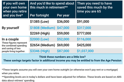The retirement targets provide home-owning Australians with a “rule of thumb” for what is needed to maintain living standards in retirement.