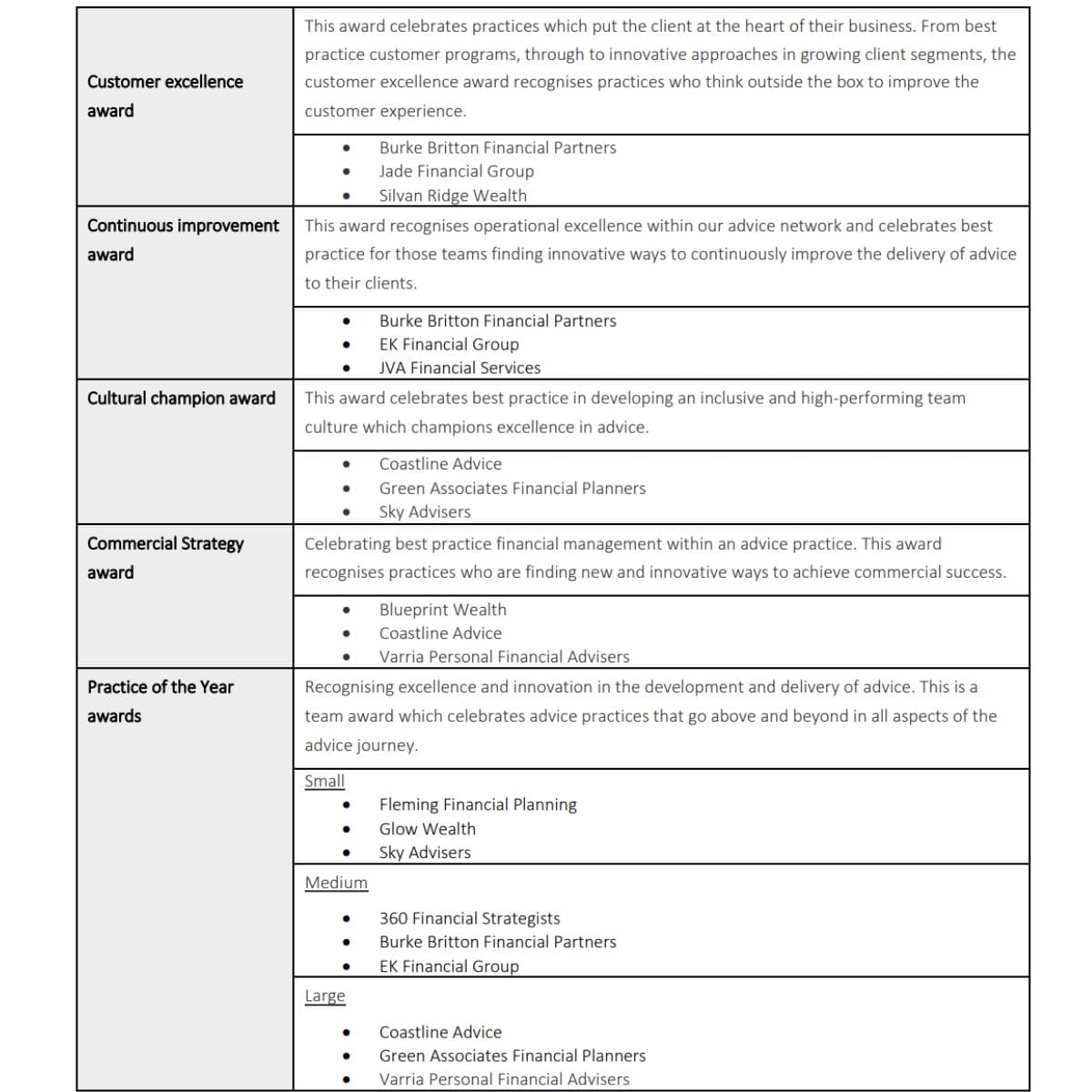 Now in its second year, the award recognises practices and advisers in the network that have demonstrated customer excellence, business innovation, cultural behaviours and continuous improvement.