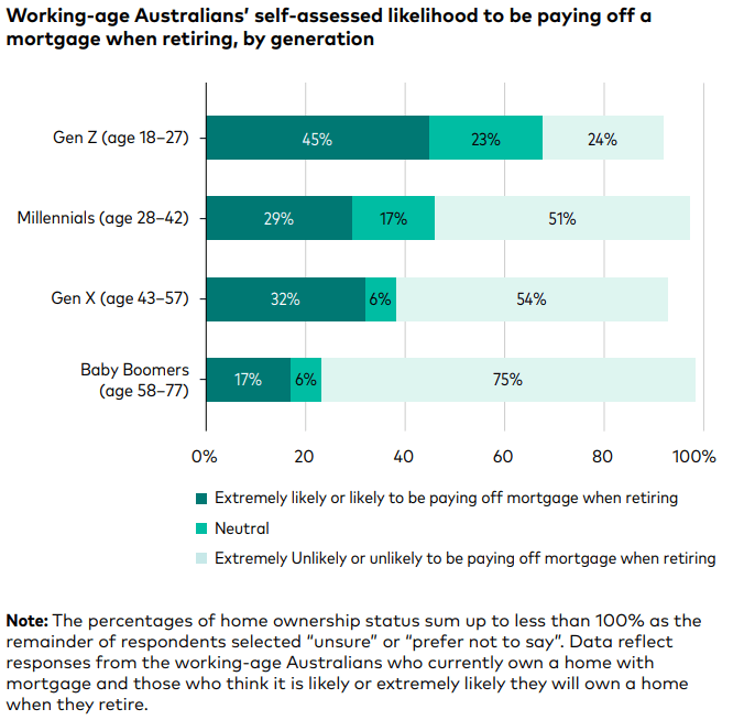 However, a third of Millennials and 45 per cent of Gen Z who expect to own a home believe they will still be paying off a mortgage in retirement.