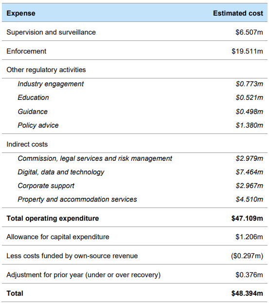The estimated cost recovery amount for FY24 was $48.39 million, to be paid by 2766 AFSLs and 15,371 advisers. ASIC calculated the number of advisers based on how many were authorised to provide retail advice at the end of the financial year.