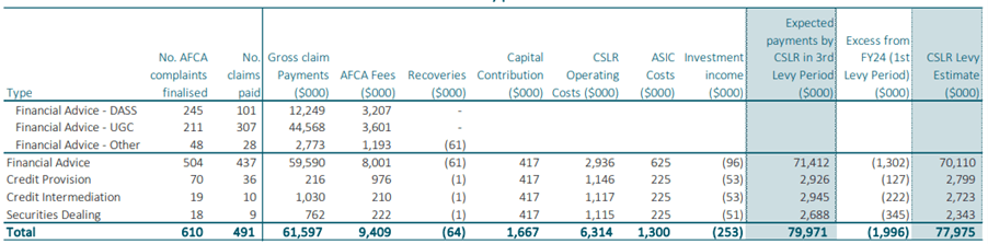 The CSLR will register a legislative instrument next week for the full $78 million. ASIC can only levy up to the subsector cap of $20 million, although Berry is unable to confirm at this time what claims will be prioritised and covered.