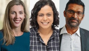 Meg heffron (second from left), Sarah Abood (second from right) and Peter burgess (right). Photo: Joel Roosa